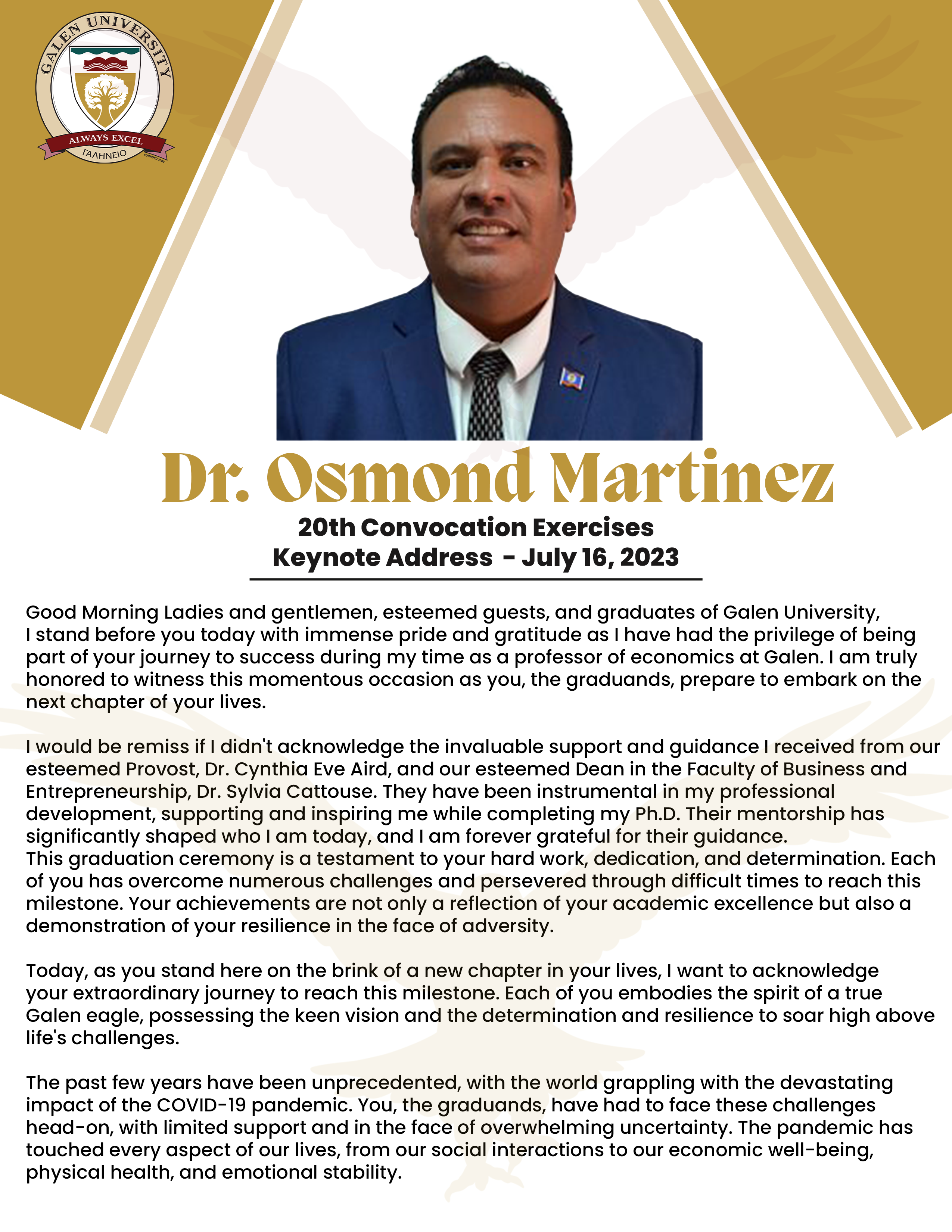 Dr. Osmond Martinez Convocation Speech 2023 | Galen University