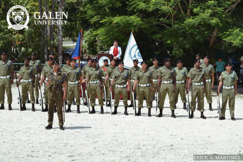 As Belize’s 38th Independence Day approaches, Galen University celebrated its annual Flag Raising Ceremony to commemorate the September celebrations. This year, the event was accompanied by a detachment from the Belize Defence Force Second Battalion Infantry. The Second Battalion Infantry is based and operated in Cayo District, Belizario Camp. They performed the Guard of Honour Parade to initiate the day’s activities and officially raised the Belizean flag during the National Anthem.