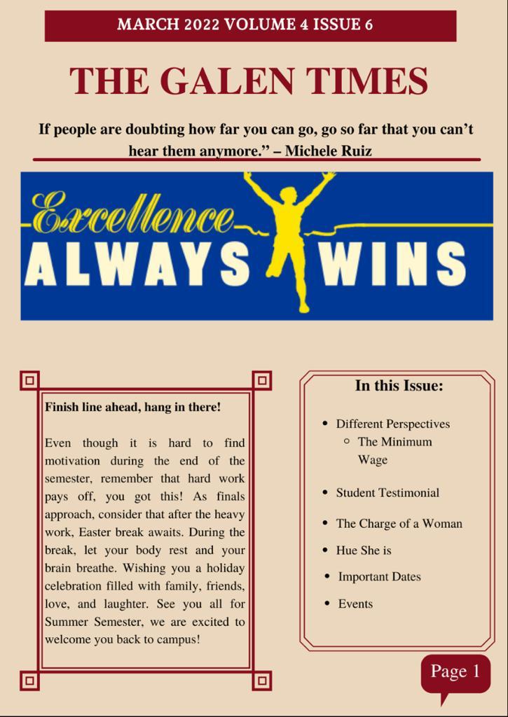 The Galen Times Volume 4 Issue 6 March 31, 2022 Category: Blog, Galen Issue Comments Off on The Galen Times Volume 4 Issue 6 DOWNLOAD THE GALEN TIMES Vol 4 Issue 6